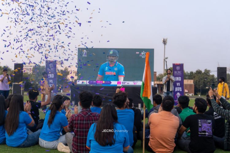 “India enters the final with a win of 70 runs,” the commentator says. All the Indians were dancing with joy and were very happy. It was the moment to be happy. India was going to play the World Cup Final after 2011. The date came; it was India vs Australia, the epic showdown. Everyone was excited and patiently waiting. JU Socialz decided to make this event very special for the hosteller as they were away from their homes. JU Socialz of JECRC University with the efforts of Kartik sir (Head of Social Media management) organized this event for the first time in university history and will organize more such events. As The great saying goes, it’s not always about study; it’s about the moment we live, how we live that makes what we are in real life.